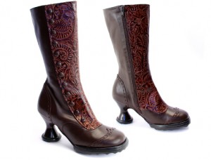 While you can buy the Babycake boot in a classy black or a striking red, I prefer the compromise of this brown pair. The tooled leather reminds me of my current Danskos.