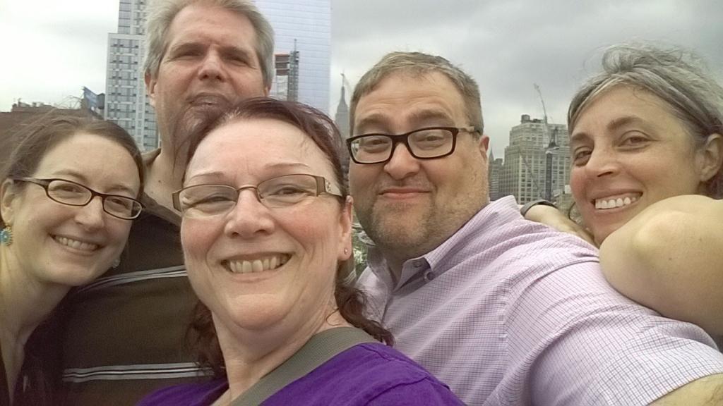 After my Caribbean cruise (yes, it was excellent, thank you, and since I am regressing in time, you can’t know about it yet), I washed my clothes, packed up my gear, and headed out to Writer’s Digest in New York, where I was the house guest of Miranda Suri, awesome author, and her husband Sid, awesome author consort. George Galuschak completed the hosting triumvirate. Chia Evers ran into town to goof off with us on Thursday, and Chris Cornell made our fourth musketeer for the conference. It was a veritable Who’s Who of VP XIII. As you see.